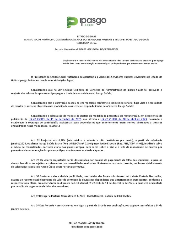 VEJA PORTARIA DO IPASGO SAÚDE:
