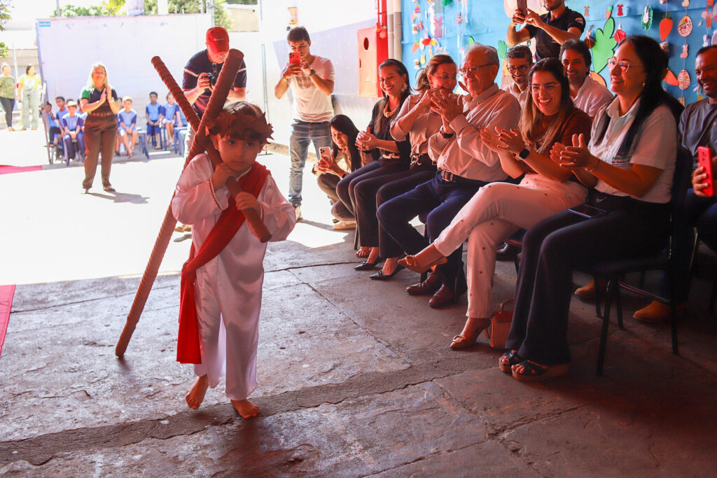 As unidades escolares prepararam apresentações especiais protagonizadas pelos próprios alunos, encantando pais e familiares presentes. A comemoração contou com a presença do prefeito Dr. Osvaldo e da primeira-dama e secretária de governo, Alcione Macedo, que fizeram questão de visitar todas as unidades para prestigiar as crianças.