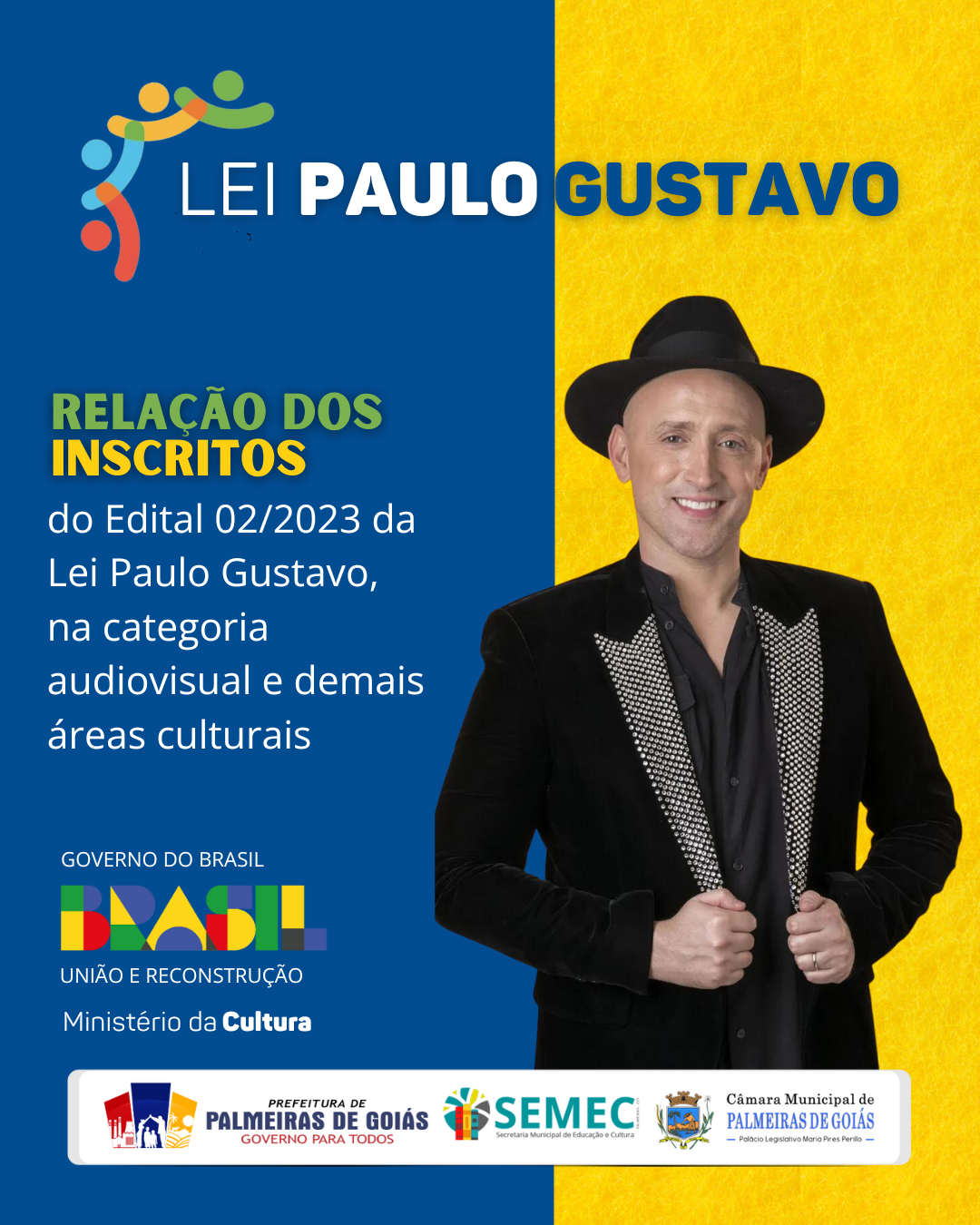 A Superintendência de Cultura da Prefeitura de Palmeiras de Goiás publica a relação dos inscritos no edital 2023 da Lei Paulo Gustavo de Incentivo a Cultura